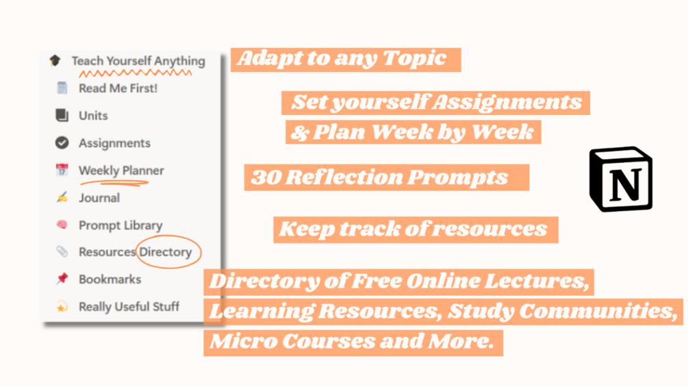 "Teach Yourself Anything" Notion template to build your own online self-study course.